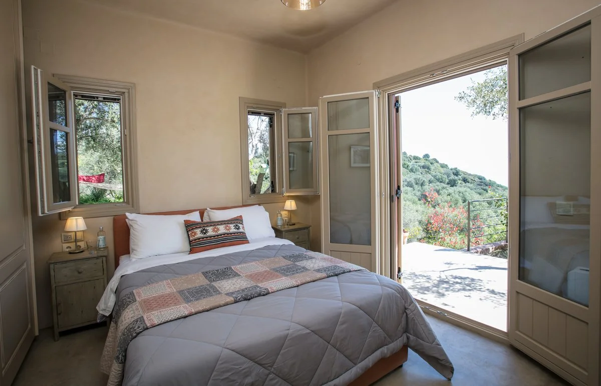 Vericoco is a spacious and comfortable retreat centre made up of two modern villas and a selection of well-designed studios and apartments. Set among olive groves and just a short walk from two beautiful beaches, it offers plenty of room for everyone to settle in with ease. During our stay, you’ll be able to enjoy views of the mountains and the Ionian Sea.